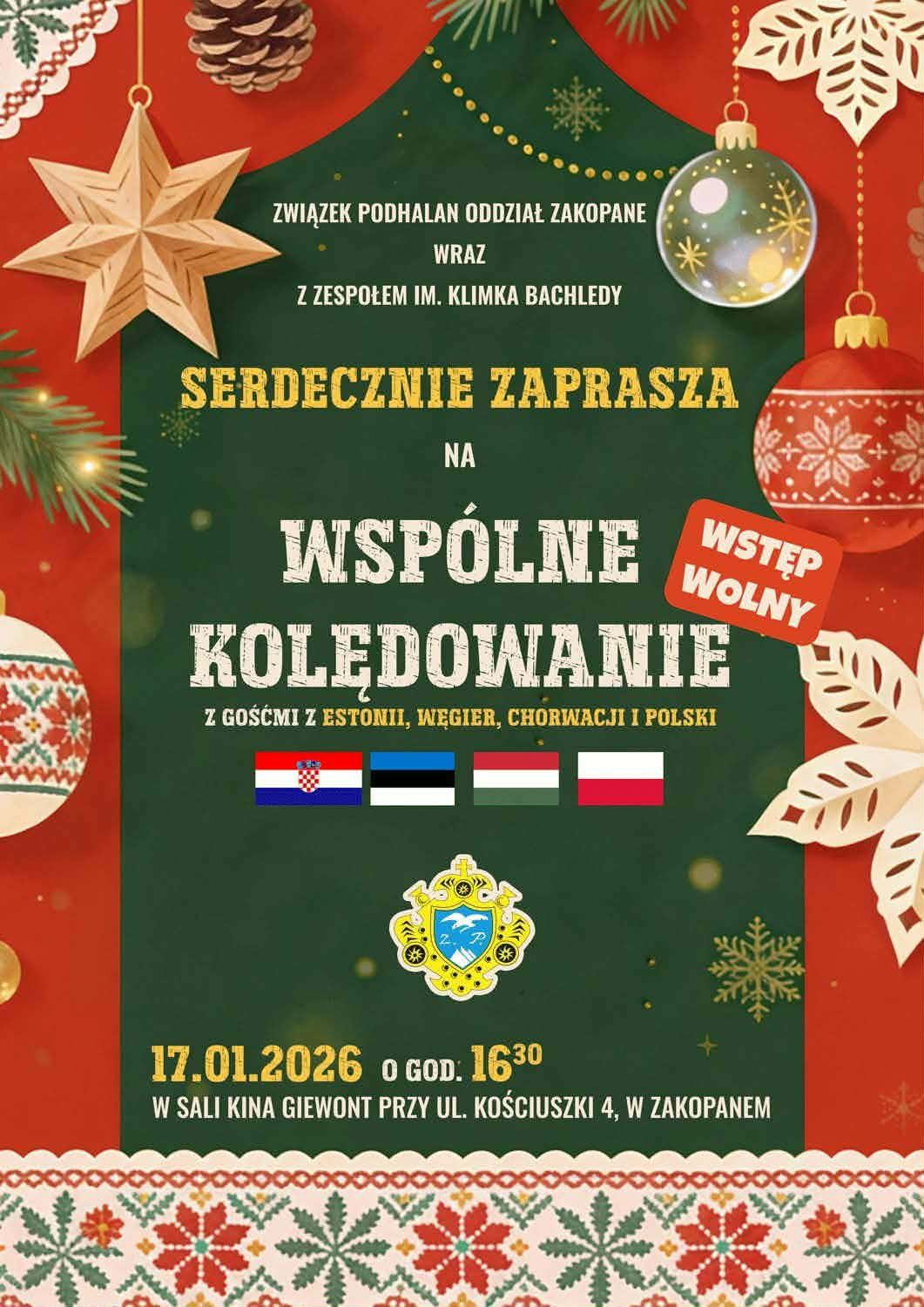 Uczniowie naszej szkoły, należący do Zespołu im. Klimka Bachledy, biorą udział we Wspólnym Kolędowaniu, które właśnie odbywa się w Kinie Giewont w Zakopanem, wraz ze Związkiem Podhalan – Oddział Zakopane